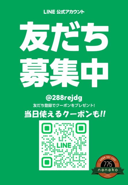 【お知らせ】GORO SKY CAFE nanako 公式LINEアカウントがスタート!!当日使えるクーポンも発行中!!