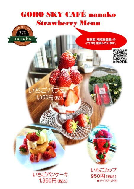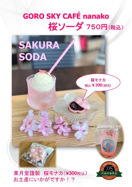 GORO SKY CAFE nanakoでは、 春の期間限定メニュー『いちごパフェ』『桜ソーダ』を3月20日(金・祝)から提供開始致しました!!
